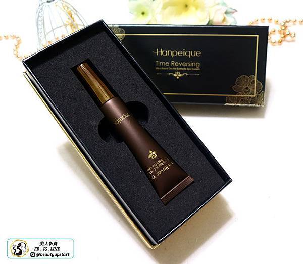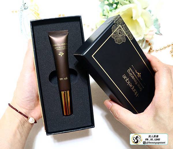 這款眼霜因為含有許多珍稀可貴的成分,包裝上則用了低調奢華黑金質感的精品禮盒,將黑蘭鑽極致逆齡眼霜如同精品裝入盒內,這樣精品質感的包裝更顯現它的內涵成分高貴,我想這不只是將眼霜簡單塗抹在眼周,而是每一次塗抹都充分發揮珍貴成分中,緊實、上提、活彈、抗暗,最極致奢華的眼部保養。